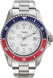 timex 2b111 mens bold silver tone watch with two tone red and blue bezel,